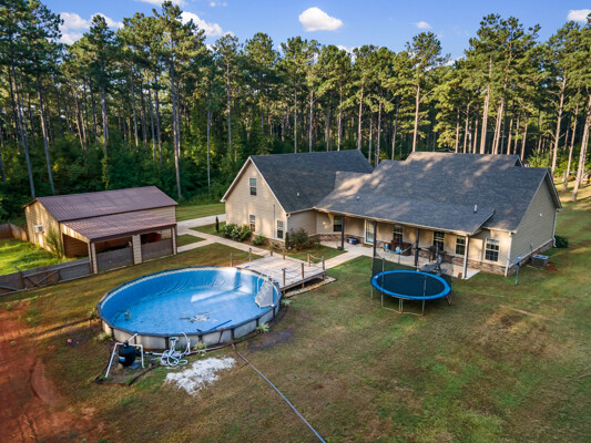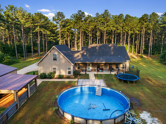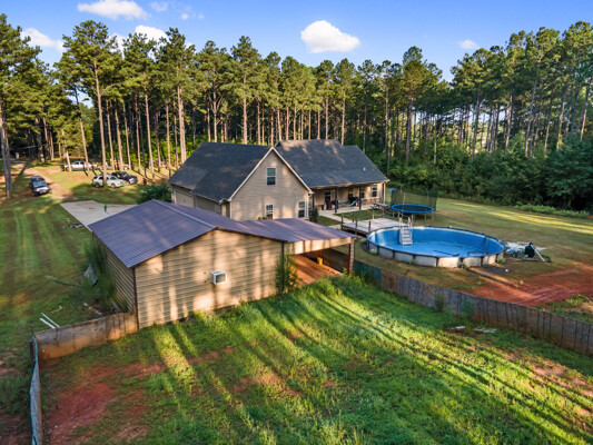 If you were on the hunt for a private Ranch, look no further! This wonderful property has 17.58 acres!!!! It has a custom gate and metal fence up front with a long open driveway,. Just imagine how much the kids and animals will enjoy this! The perfectly built home was constructed in 2017 so everything is pretty much on the newer side. sit outside on the front porch with your coffee as you see the Georgia leaves change color, you have perfect share with the covered porch and elegantly covered masoned beams. (just missing you and those rocking chairs. If you are looking for a lifetime home that you can retire in, well, let me tell you that everything you need is on the main level, master, bedrooms , bathrooms, kitchen ect. You do however have a bonus room upstairs, possibilities are endless, make it a teenage suite, movie room, game room, man cave, craft room, beauty room, gym? The high ceilings make the home feel larger than it already is. Fresh paint cover the walls, as you walk through the open floor plan. Watch the kiddos from the large country kitchen while they play in the living room. The kitchen features white soft close cabinets and exquisite stone counters. Also for my gun owners, Gun safe room already built under the stairs.Now let's walk outside< I know I know, I'am not done, this gems holds so many things, i just might not fit them all. There's a separate garage and workshop. It already includes built in cabinets that has a window unit so you can work comfortably in this GA heat. The room gas spray foam added a year ago as well. There's a coral or fenced in space for your dogs , horses or cows. And yes!! it also has an above ground pool! Literally perfect backyard for entertaining. I guess all you might need is an outdoor kitchen but, I am sure a Blackstone or a grill will do. :) You have so much space for endless possibilities! I will warn you, you are going to see so many cute deer right in your front or backyard! You will not want to miss this opportunity!!!!